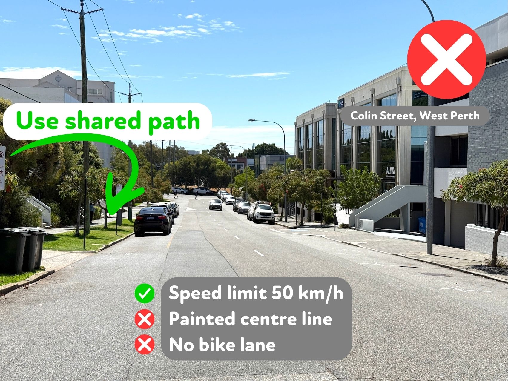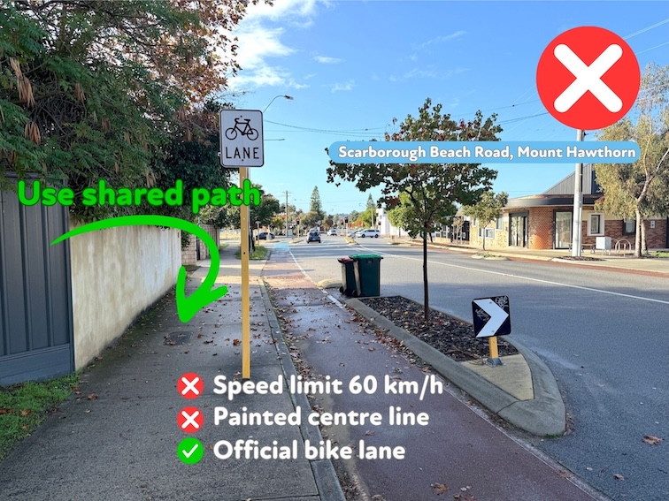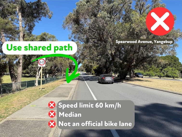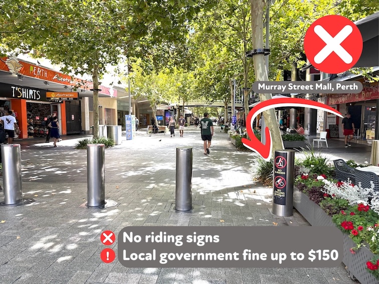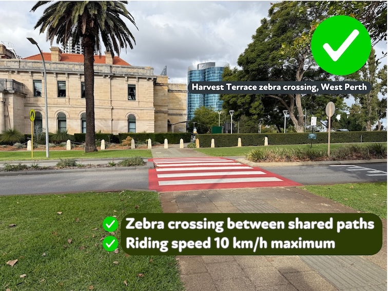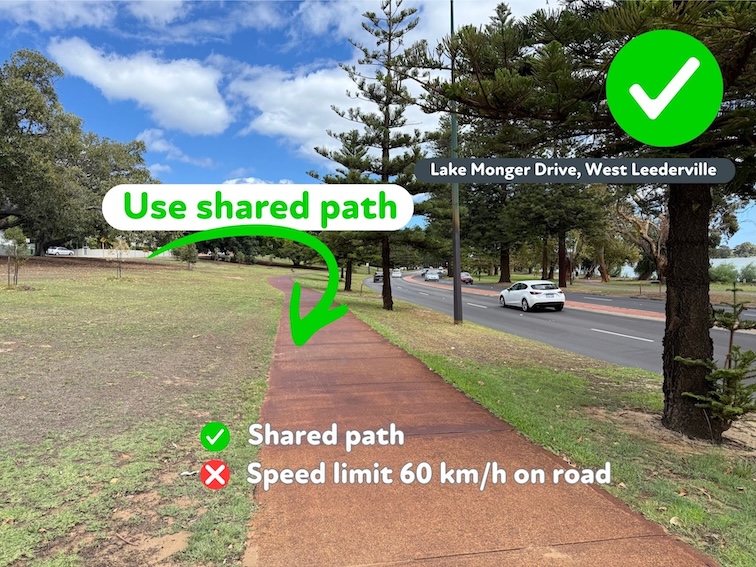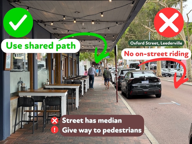 Remember, in Western Australia all footpaths became shared paths after April 2016 when the footpath riding law was amended to give all people a safer riding option.