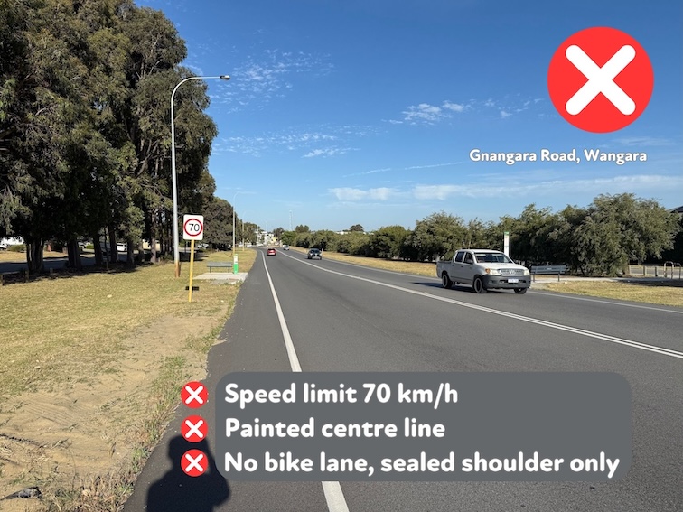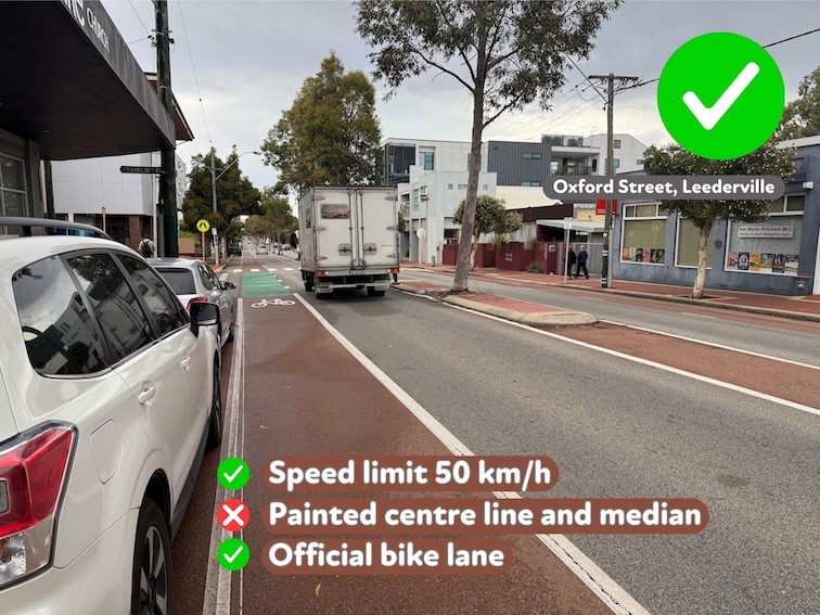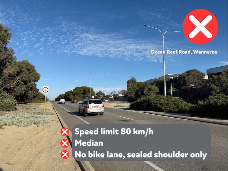 The Road Safety Commission’s Review of eRideable Road Rules, published in May 2025 recommended to “amend the Road Traffic Code 2000 to remove the prohibition on eRideables travelling on 50 km/h roads that have a diving line or median strip”.  WestCycle supports this recommendation.