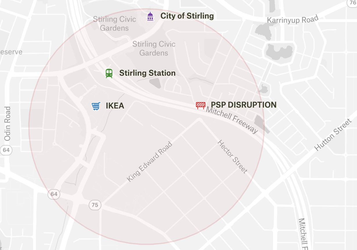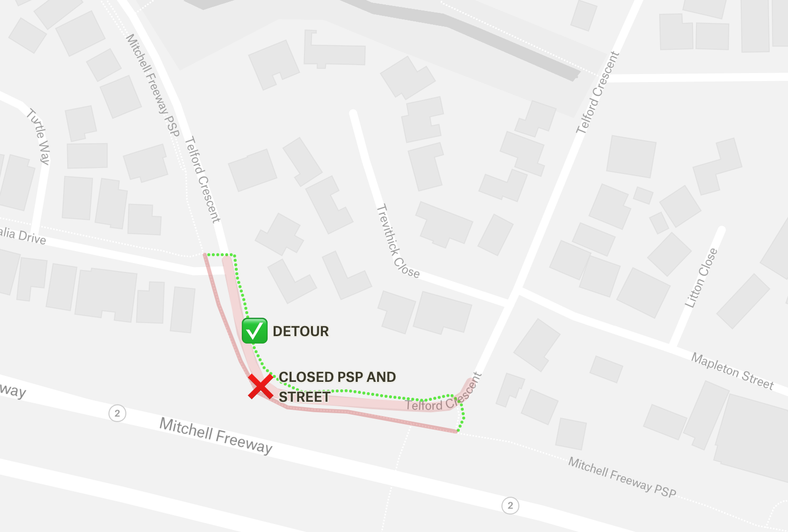 The slight detour of the PSP near the Stephensen Ave Extension Project (Stirling) has been extended to late October 2025.